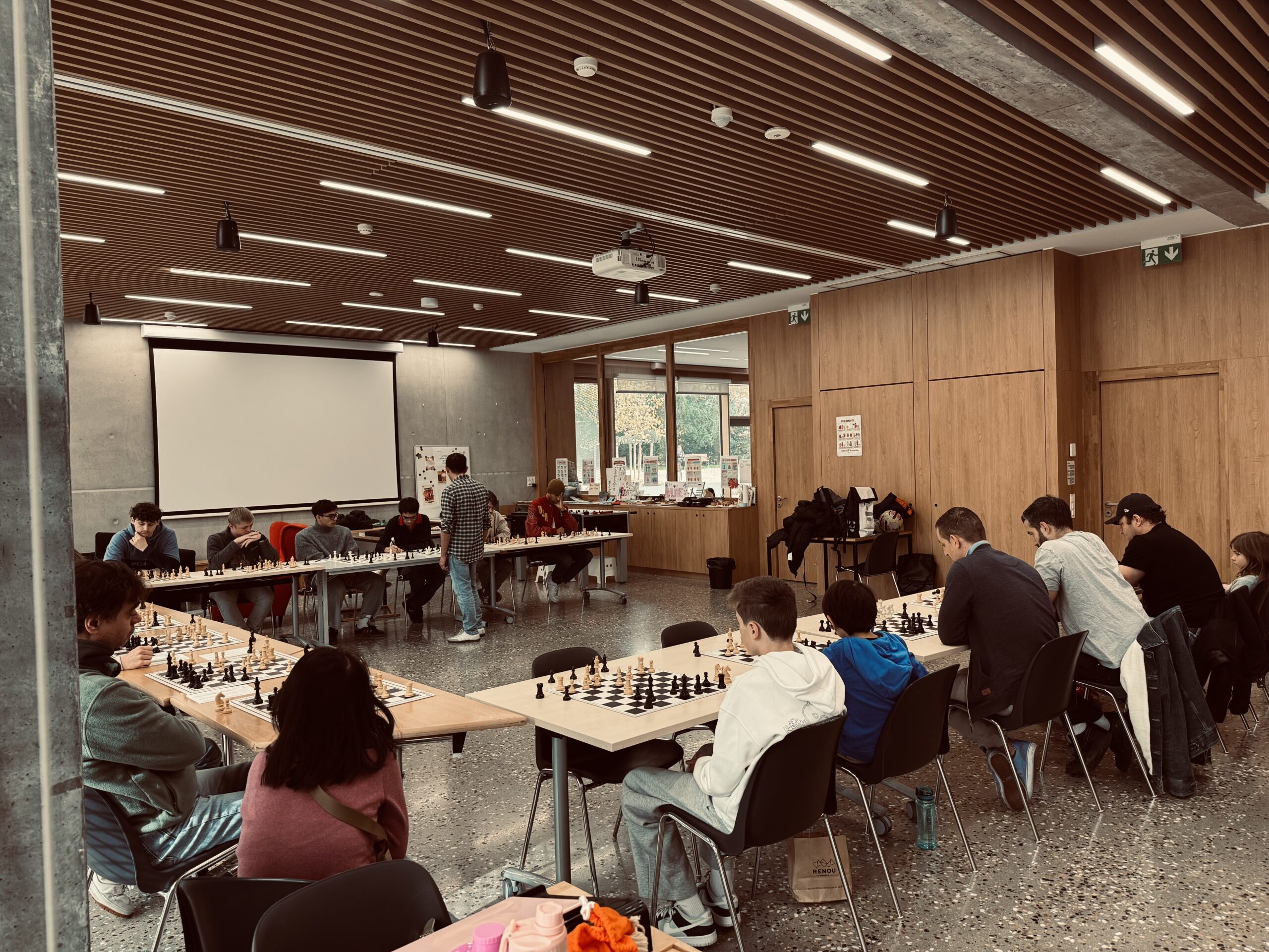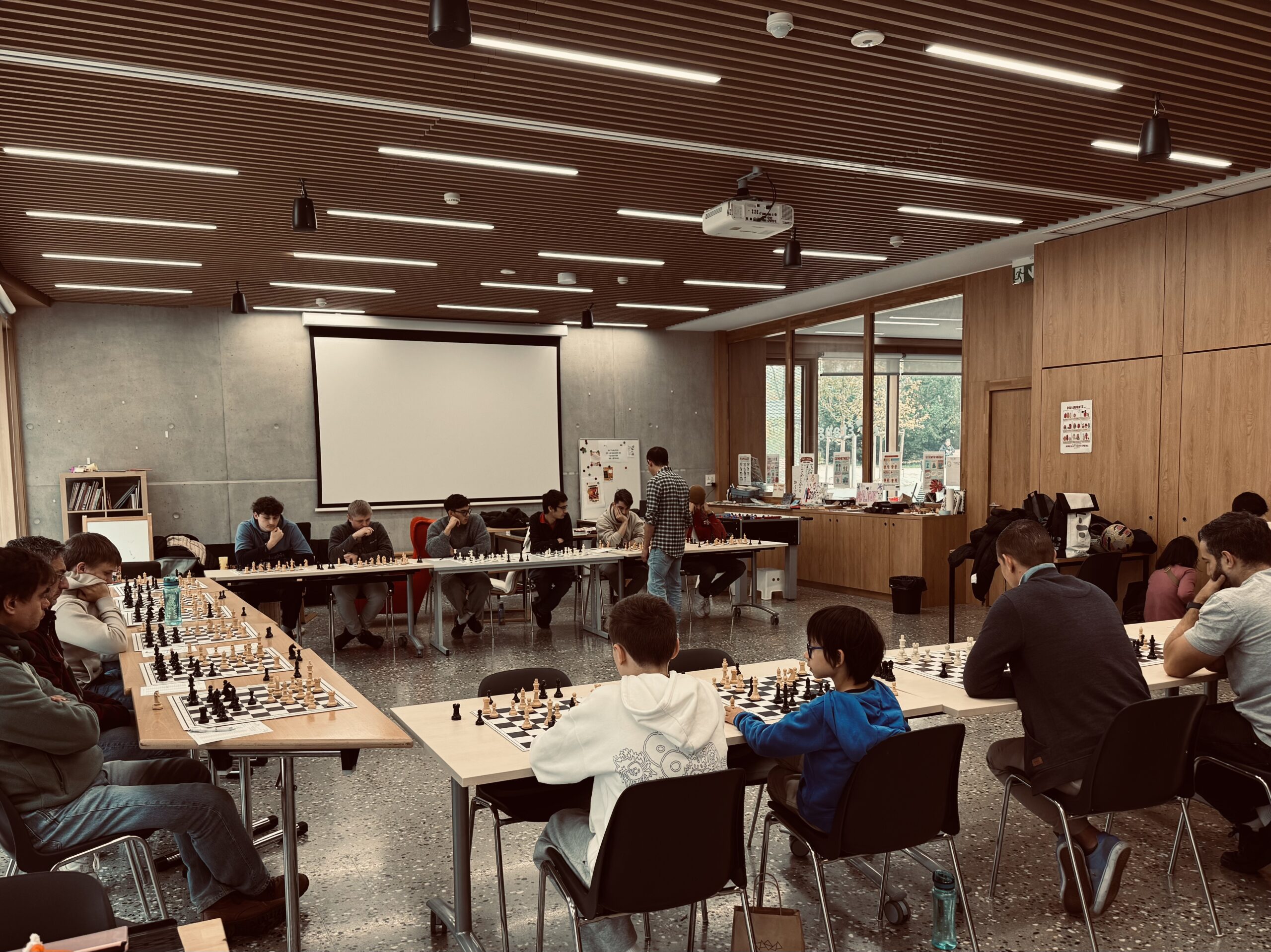 Notre prof a joué des parties en simultanée avec nos participants.