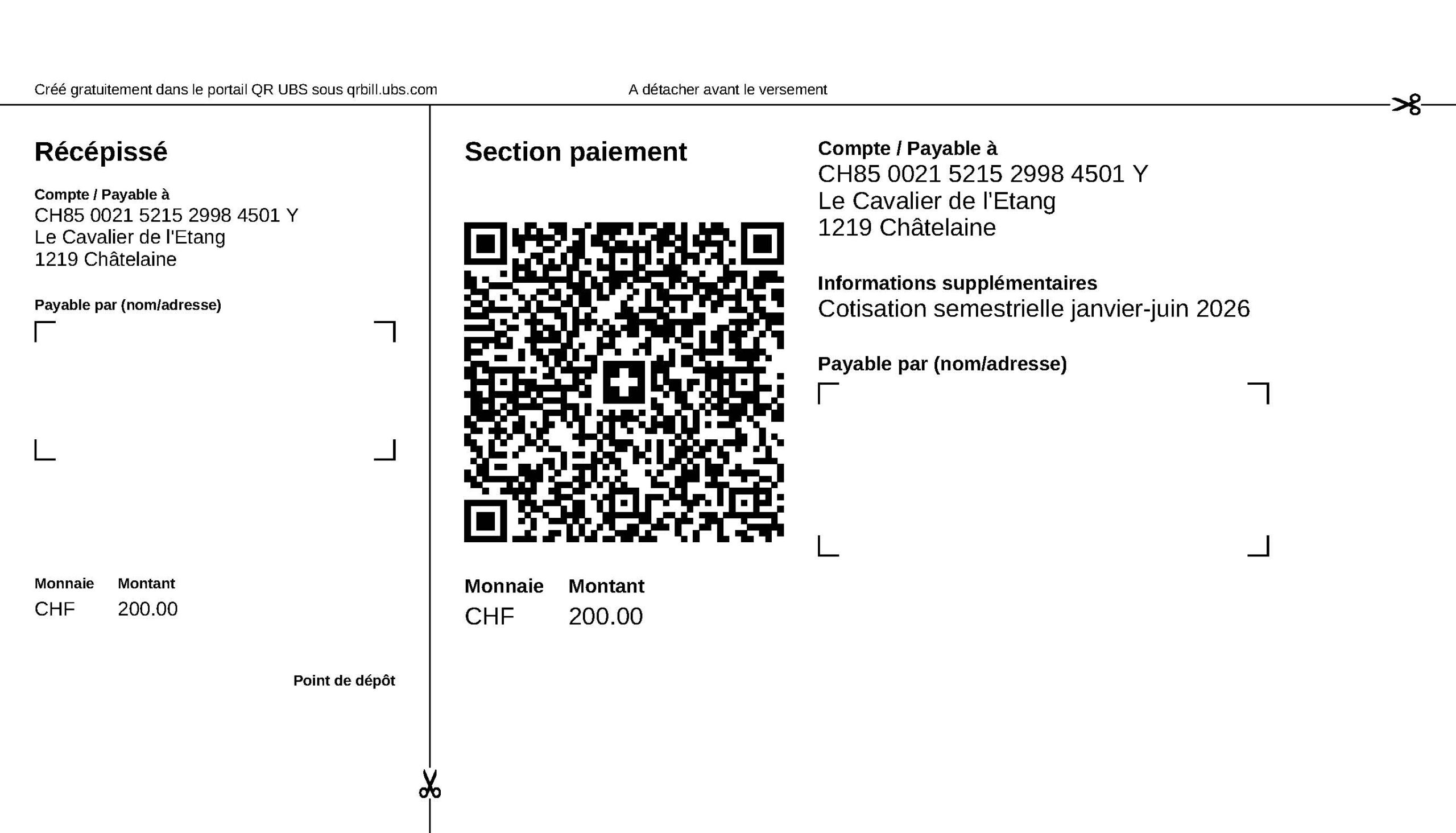 La cotisation est de 200 CH par semestre avec le QR code ci-dessous